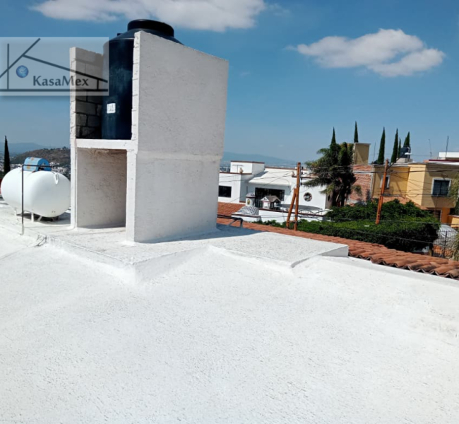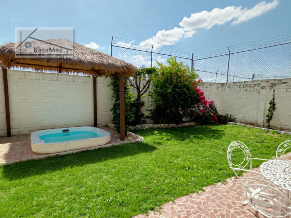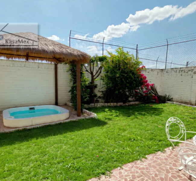 Querétaro En venta acogedora casa con un enorme potencial con ante proyecto para una terraza panorámica (roof garden) aprovechando su gran ubicación”. La casa cuenta con 2 niveles desplantada en una superficie de terreno de 200 M2 y una superficie de construcción de 172 M2. Estacionamiento para 2 vehículos, área de sala y comedor, cocina equipada, cuarto con baño en planta baja ideal para home office, área de lavado con conexiones para máquinas de lavado y secado además de lavadero, tanque de gas con capacidad de 300 Litros, cisterna de agua de 15,000 Litros, estudio, cuenta con 3 habitaciones la principal con baño completo y vestidor, todas las habitaciones con closet de madera y las otras 2 habitaciones comparten un baño. Patio/jardín de 100 M2 en la parte trasera, barda perimetral de 3 metros con malla, escalera de servicio para la azotea la cual se puede modificar como se muestra en el proyecto en las fotos así como la instalación de un jacuzzi con palapa. La casa está frente a un parque. Todos los servicios en la zona así como fácil acceso a vías principales de comunicación. La zona está considerada como residencial media y su plusvalía va en constante crecimiento. Tejeda Municipio de Corregidora.