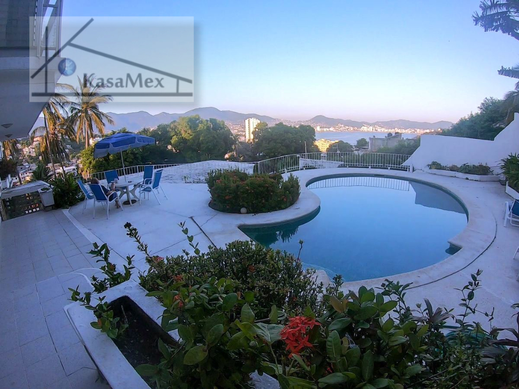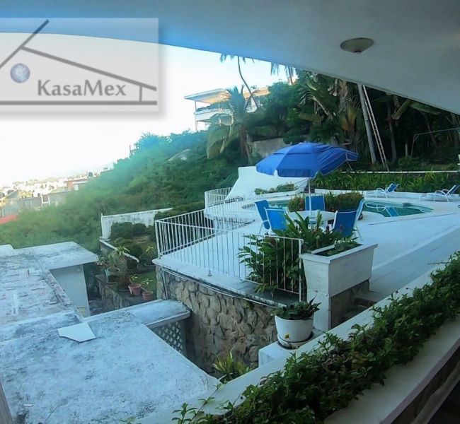 Acapulco. For Sale House with the nostalgia of the golden 70's, located in the iconic sub division Las Playas with a beautiful partial view towards the bay and the cliffs of the famous and traditional Quebrada. The property has 1,076 M2 (11,581 Sq.Ft) of land, 3 levels each surrounded by its respective panoramic terrace corridor and a constructed area of 1,400 M2 (15,069 Sq.Ft) , 6 large rooms with enough lighting and ventilated, 6 bathrooms and a half, the property is quite cool due to the cross ventilation. On the first level there is a generous room type open room which gives way to the terrace and the beautiful pool, 2 bedrooms and a Bungalow with two bedrooms with their respective room and terrace, equipped kitchen with pantry, garage for 3 vehicles. This property is located on a quiet street of scarce vehicular traffic full of centennial trees so it is quite quiet, without this depriving of having access almost immediately to the coastal area, of the state of conservation in magnificent since there is constant maintenance, cistern, LP gas tank. All services in the area. Without a doubt this property has a lot of potential according to your creativity. Price $ 255,000 USD. Showing by appointment.