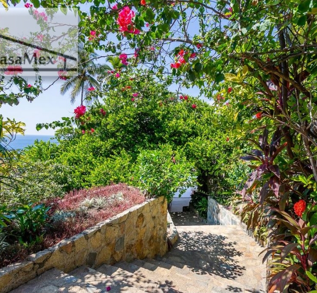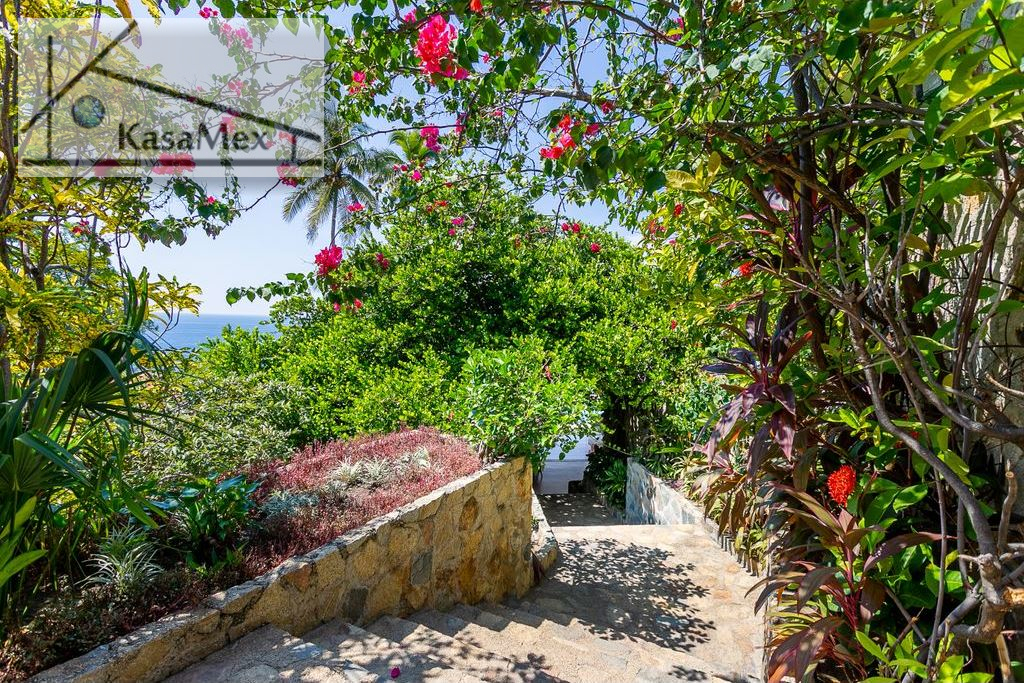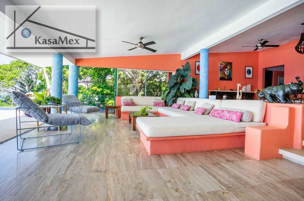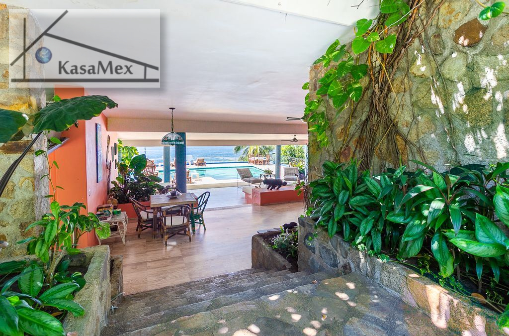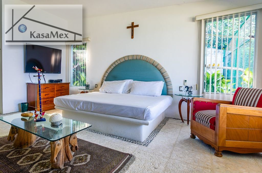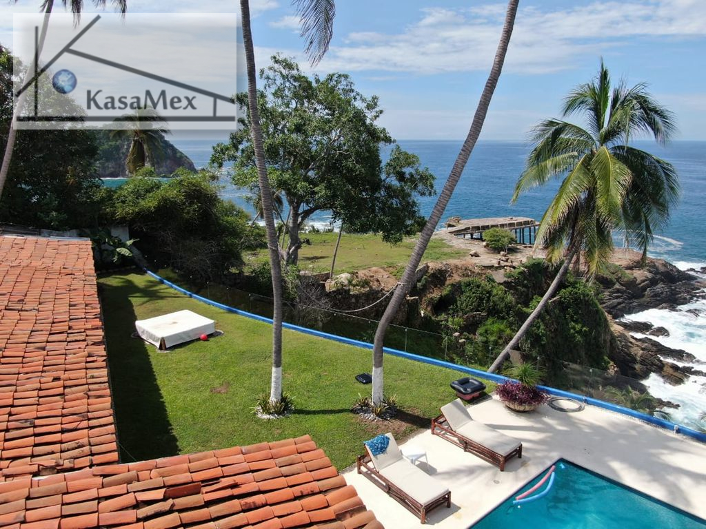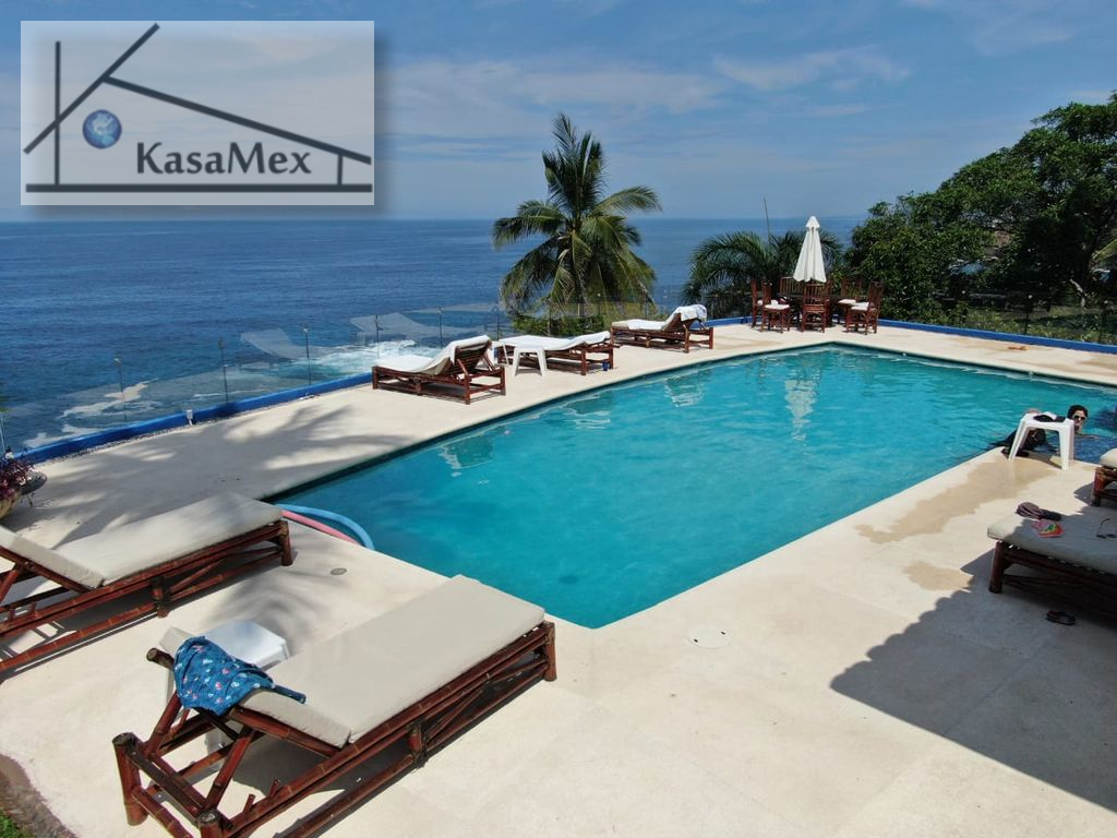 Acapulco. En venta Tropicalísima residencia ubicada en camino a pie de la cuesta, frente al mar y al pie de hermosos acantilados donde se funden con las cálidas aguas del océano pacifico, este inmueble no es muy común encontrarlo tanto por su arquitectura como por su entrono que lo hacen un lugar especialmente encantador, construida en 1990. La propiedad cuenta con un solo nivel, 4,000 M2 (80 x 50) de superficie de terreno y 1,000 M2 de construcción (Ad-Corpus), 4 enormes y comodas habitaciones cada una con su baño completo, aire acondicionado tipo mini Split y todas con vista al mar, Habitación (1) 1 cama King size y 1 sofá cama, Habitación (2) 2 camas matrimoniales y 1 sofá cama, Habitación (3)1 cama King size y 1 sofá cama, Habitación (4) 2 camas matrimoniales y 2 sofás cama, cocina equipada con área de desayunador y alacena, amplia y panorámica estancia/sala y comedor ambas con encantadora vista al mar, baño de visitas, Alberca completamente equipada con área de asoleadero y terraza, jardín con plantas y flores exóticas, suministro parcial de energía a través de paneles solares, sistema de filtrado de agua potable, área de bodega, cuarto de servicio independiente con baño completo, estacionamiento cerrado para 3 automóviles, impresionantes muros de carga de roca, cisterna con 2 plantas hidroneumáticas. Esta bella residencia le ofrece a usted las mejores puestas de Sol durante todo el año, sin lugar a dudas es un santuario de paz y tranquilidad que solo se ve interrumpido por las Olas del mar y las caricias de la brisa marina, la ubicación es estratégica está a solo 20 minutos de la costera y 5 minutos de pie de la cuesta y su famosa laguna de Coyuca. Precio de venta $ 750,000 USD. Se muestra previa cita, se aceptan créditos con el 20% de enganche, sino cuenta con un crédito tal vez podríamos ayudarlo a obtenerlo. Contáctenos.