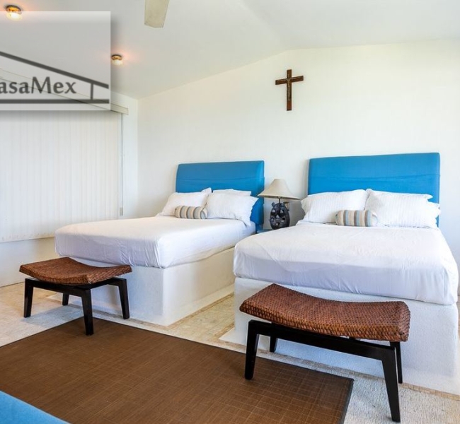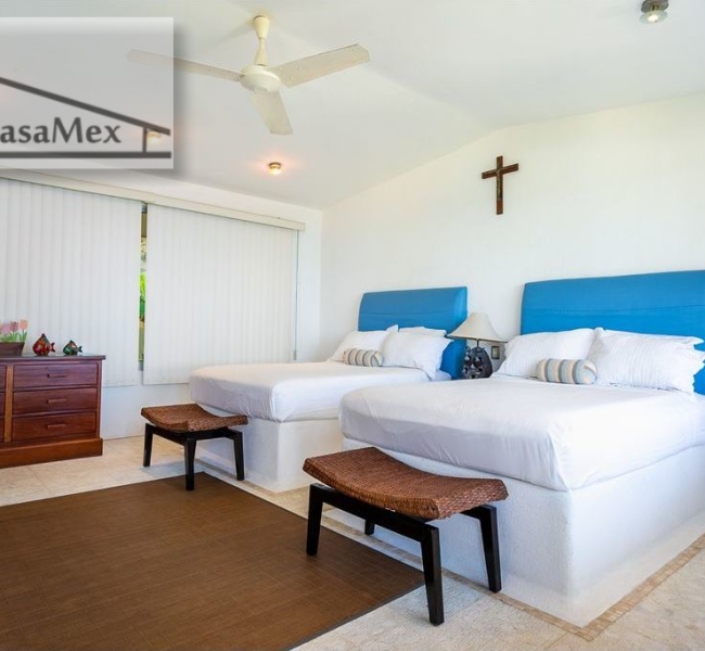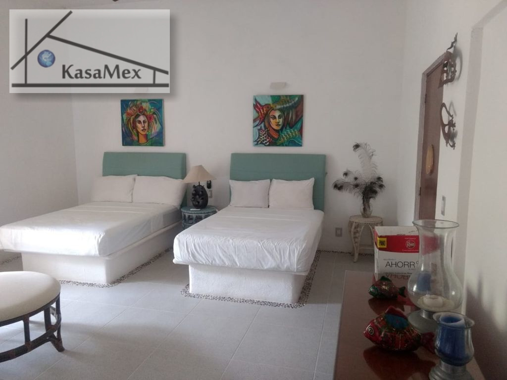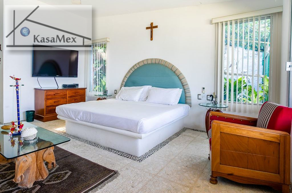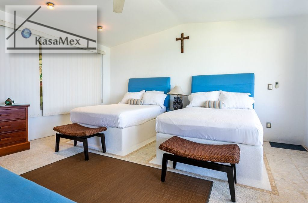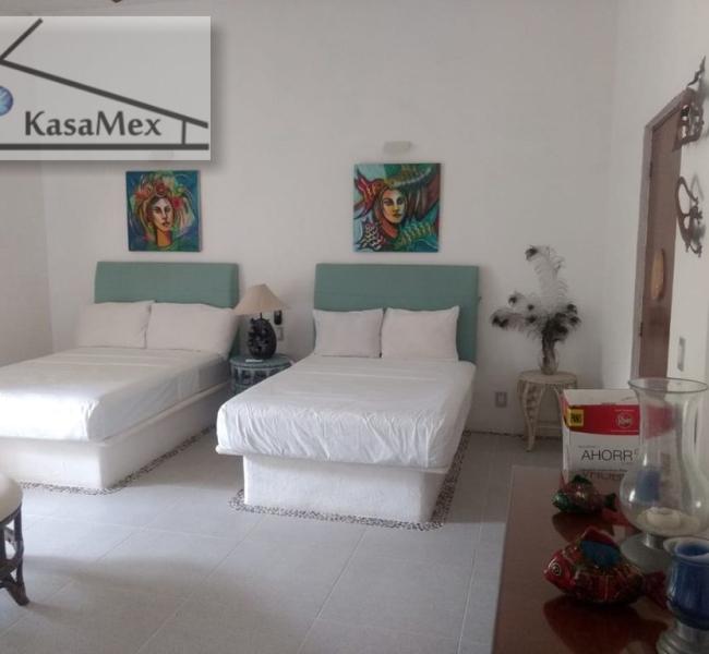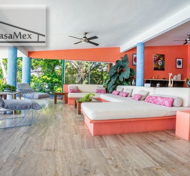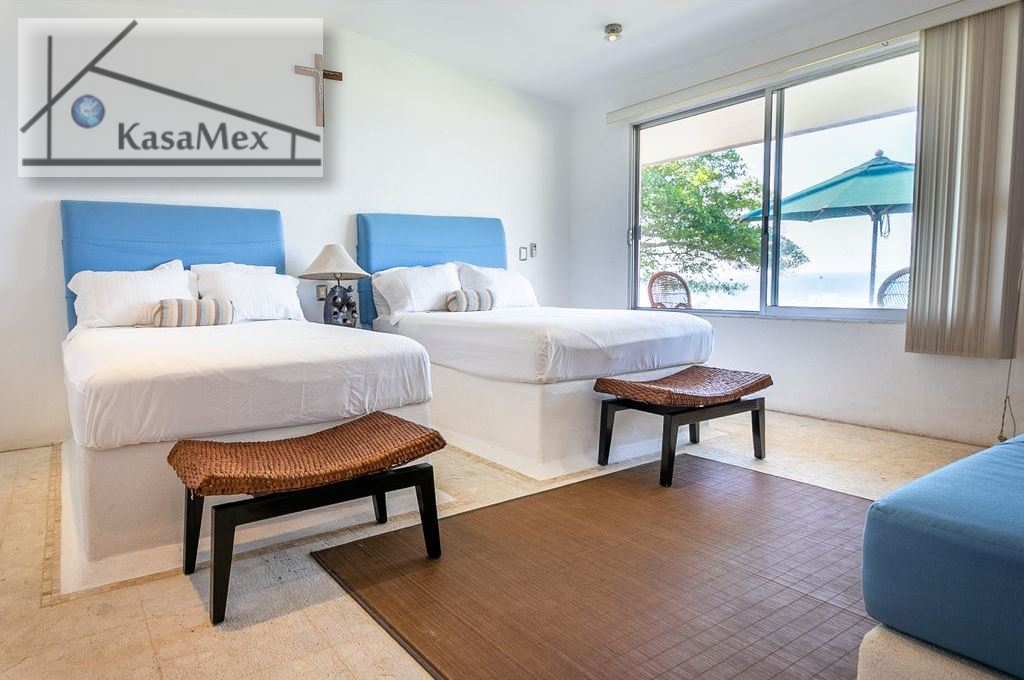 Acapulco. En venta Tropicalísima residencia ubicada en camino a pie de la cuesta, frente al mar y al pie de hermosos acantilados donde se funden con las cálidas aguas del océano pacifico, este inmueble no es muy común encontrarlo tanto por su arquitectura como por su entrono que lo hacen un lugar especialmente encantador, construida en 1990. La propiedad cuenta con un solo nivel, 4,000 M2 (80 x 50) de superficie de terreno y 1,000 M2 de construcción (Ad-Corpus), 4 enormes y comodas habitaciones cada una con su baño completo, aire acondicionado tipo mini Split y todas con vista al mar, Habitación (1) 1 cama King size y 1 sofá cama, Habitación (2) 2 camas matrimoniales y 1 sofá cama, Habitación (3)1 cama King size y 1 sofá cama, Habitación (4) 2 camas matrimoniales y 2 sofás cama, cocina equipada con área de desayunador y alacena, amplia y panorámica estancia/sala y comedor ambas con encantadora vista al mar, baño de visitas, Alberca completamente equipada con área de asoleadero y terraza, jardín con plantas y flores exóticas, suministro parcial de energía a través de paneles solares, sistema de filtrado de agua potable, área de bodega, cuarto de servicio independiente con baño completo, estacionamiento cerrado para 3 automóviles, impresionantes muros de carga de roca, cisterna con 2 plantas hidroneumáticas. Esta bella residencia le ofrece a usted las mejores puestas de Sol durante todo el año, sin lugar a dudas es un santuario de paz y tranquilidad que solo se ve interrumpido por las Olas del mar y las caricias de la brisa marina, la ubicación es estratégica está a solo 20 minutos de la costera y 5 minutos de pie de la cuesta y su famosa laguna de Coyuca. Precio de venta $ 750,000 USD. Se muestra previa cita, se aceptan créditos con el 20% de enganche, sino cuenta con un crédito tal vez podríamos ayudarlo a obtenerlo. Contáctenos.