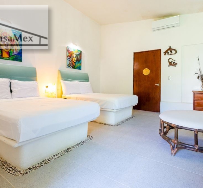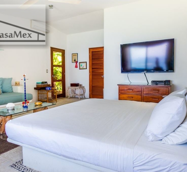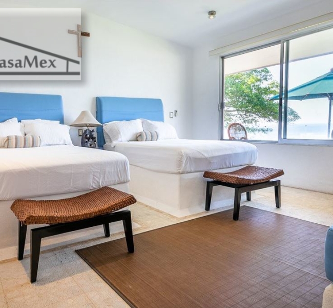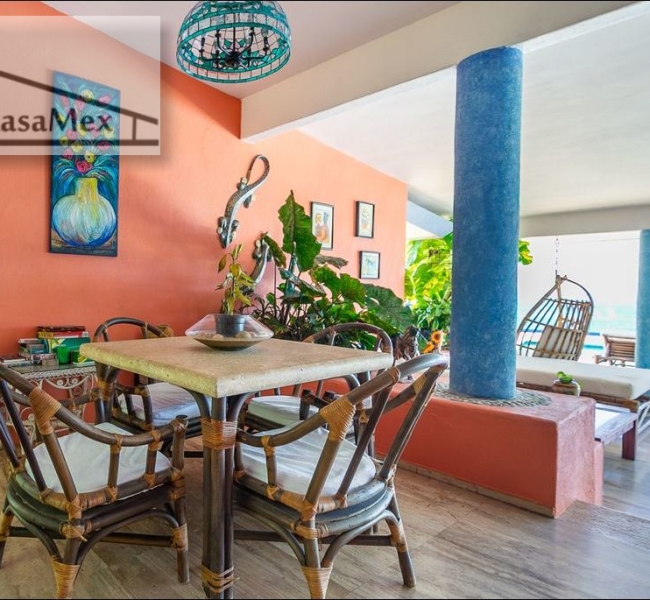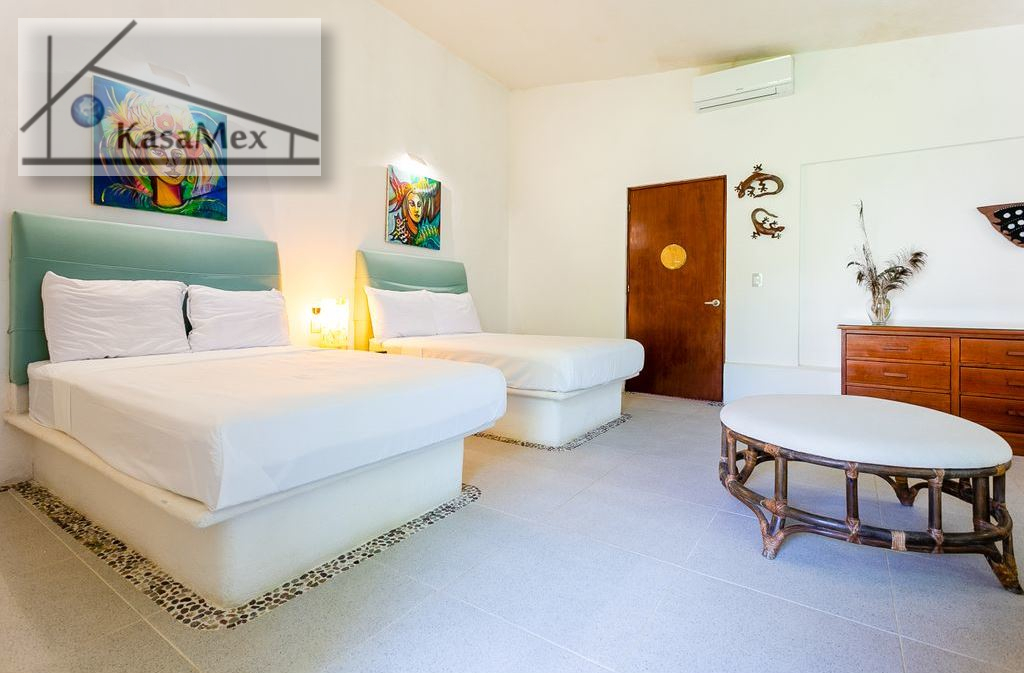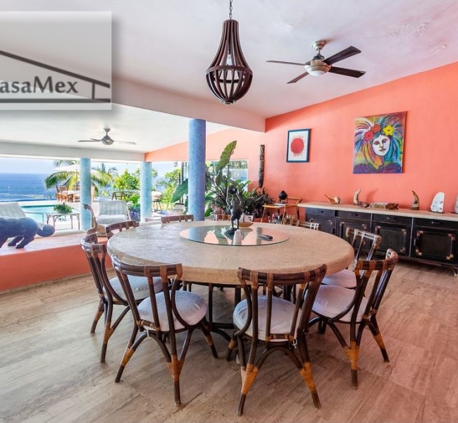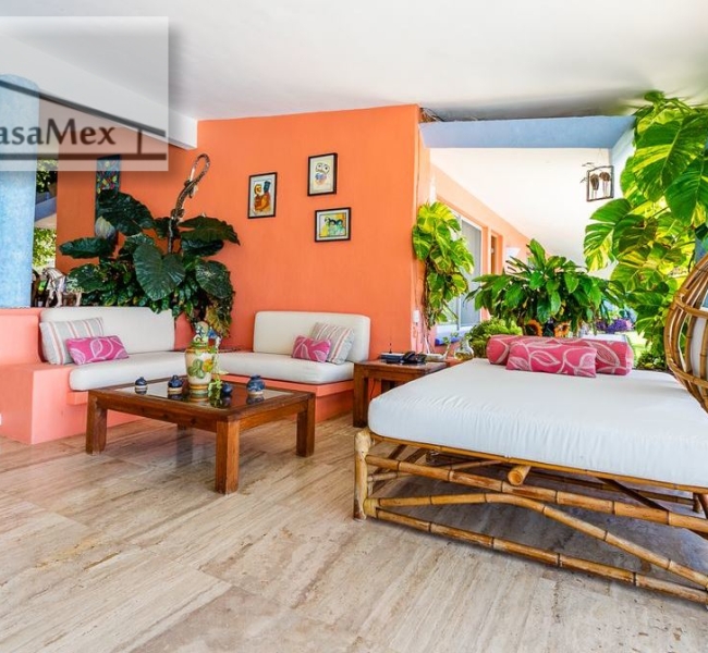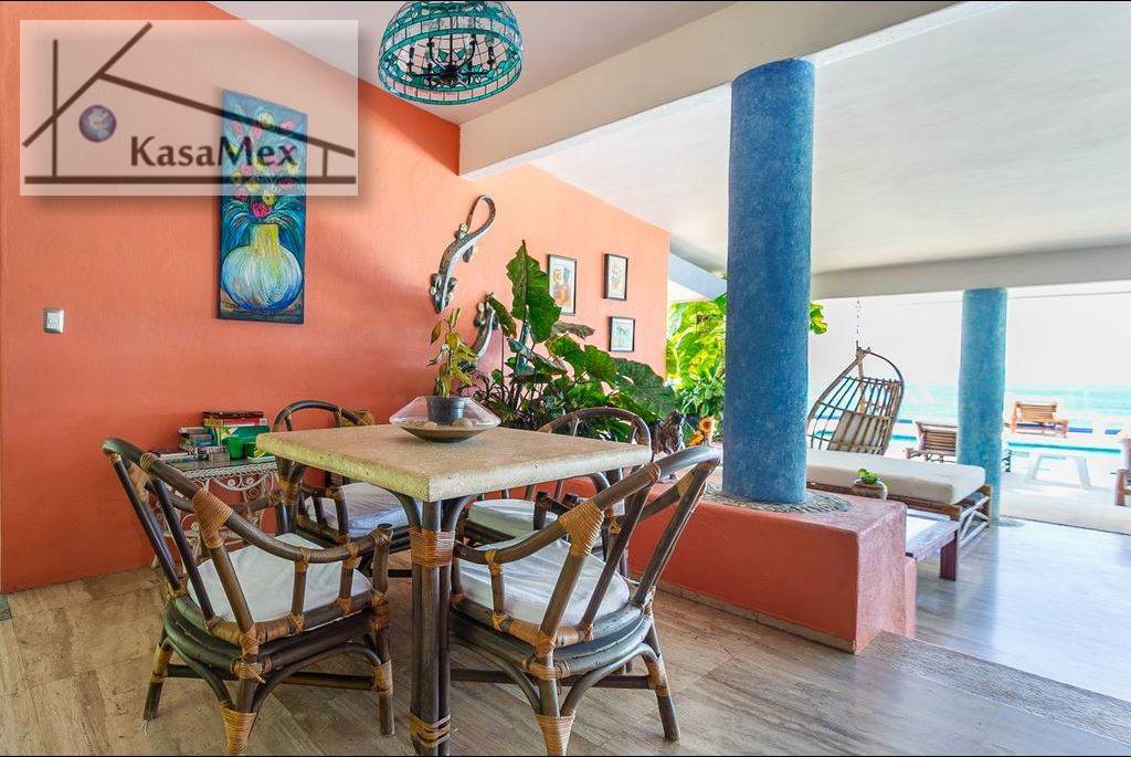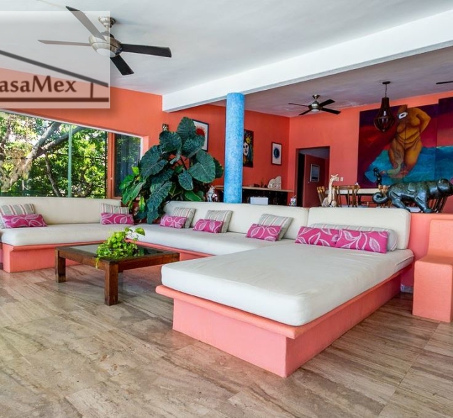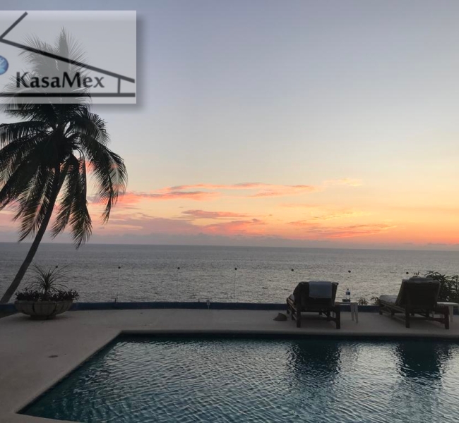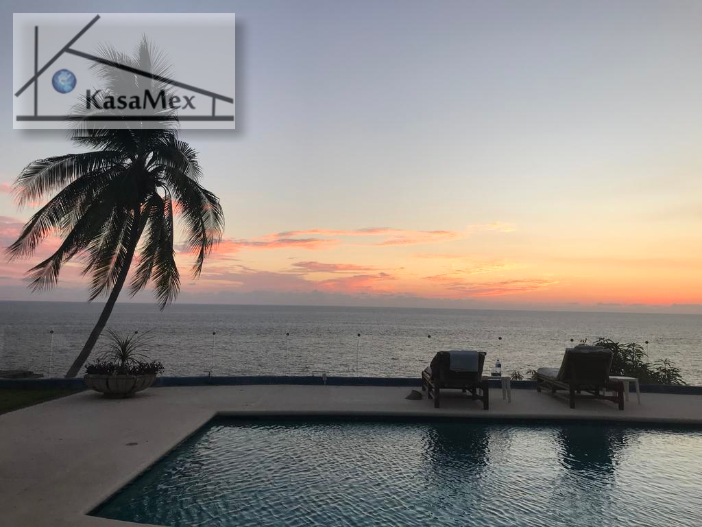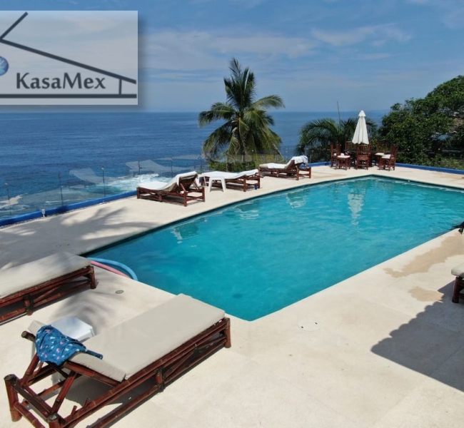 Acapulco. For sale Tropical residence located on the road to the sunset paradise Pie de la cuesta, facing the sea and at the foot of beautiful cliffs where they merge with the warm waters of the Pacific Ocean, this property is not very common to find it both for its architecture and its environment that make it a particularly charming place. The property has only one level, (43,055 Sq.Ft) = 4,000 Sq. Meters (80m x 50m) of land and (10,763 Sq.Ft) = 1,000 Sq. Meters of construction (Ad-Corpus), built in 1990 , 4 huge and comfortable rooms each with its own bathroom, mini Split air conditioning and all with ocean view, Bedroom (1) 1 king size bed and 1 sofa bed, Bedroom (2) 2 double beds and 1 sofa bed, Bedroom (3) 1 king size bed and 1 sofa bed, Bedroom (4) 2 double beds and 2 sofa beds, equipped kitchen with breakfast area and pantry, spacious and panoramic living room and dining room both with lovely ocean view, guest bathroom, fully equipped pool with sunbathing area and terrace, garden with exotic plants and flowers, partial power supply through solar panels, water filtration system, wine cellar area, separate maid's room with full bathroom, gated parking for 3 cars, impressive rock load walls, cistern with 2 hydro-pneumatic plants. This beautiful residence offers you the best sunsets throughout the year, undoubtedly is a sanctuary of peace and tranquility that is only interrupted by the waves of the sea and the caresses of the sea breeze, the location is strategic is only 20 minutes from the main avenue “La costera” and 5 minutes away from pie de la cuesta and its famous lagoon Coyuca. Selling price $ 750,000 USD. It is showing by appointment, credits are accepted with 20% down payment, if you do not have a credit maybe we could help you get it. Contact us.