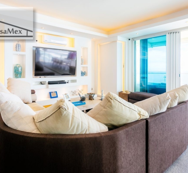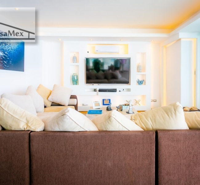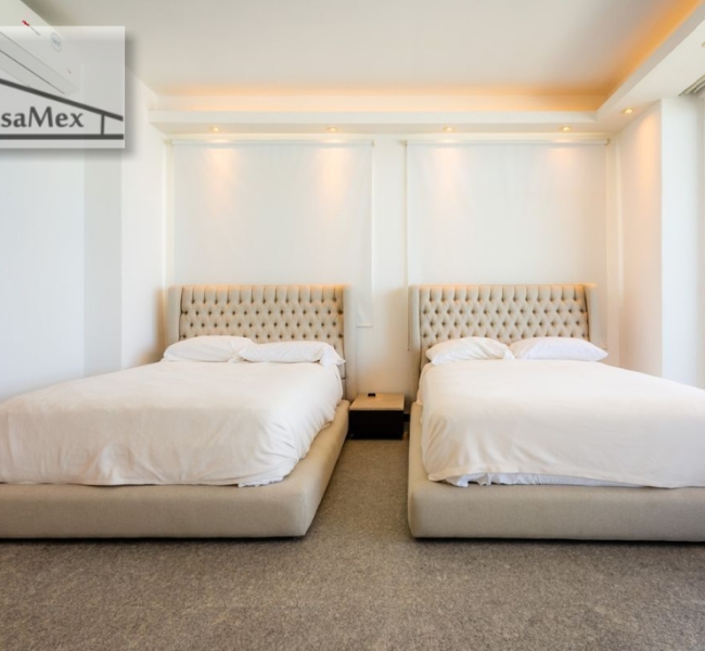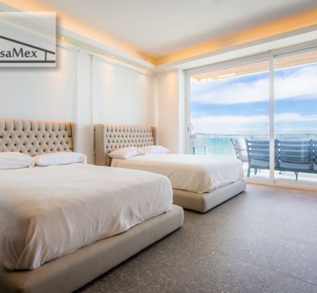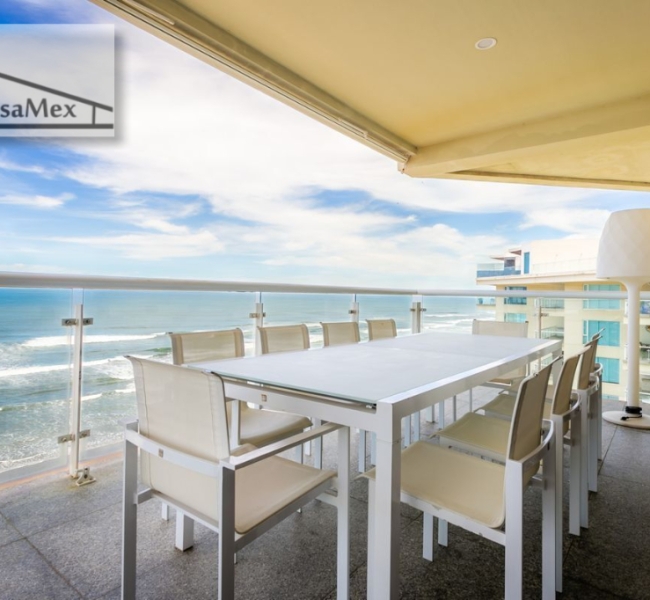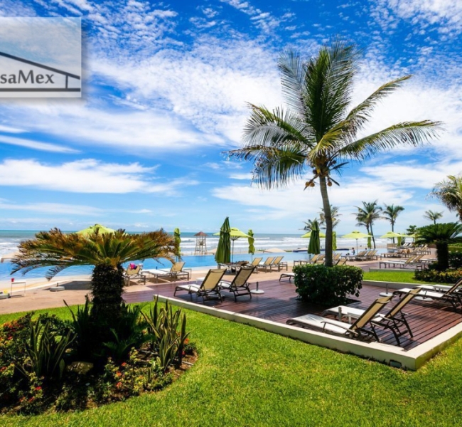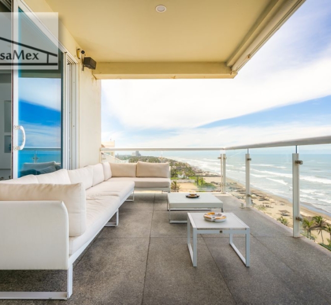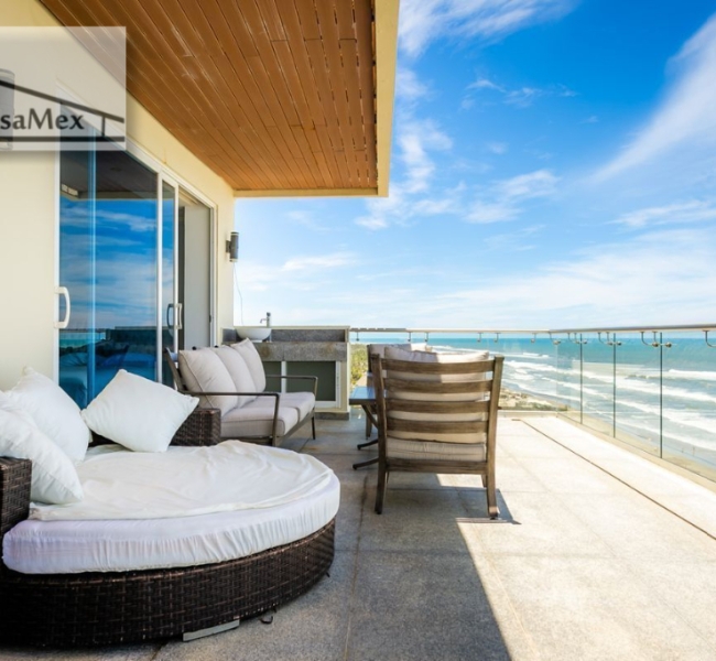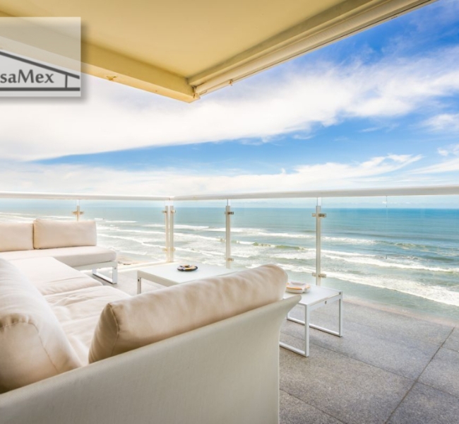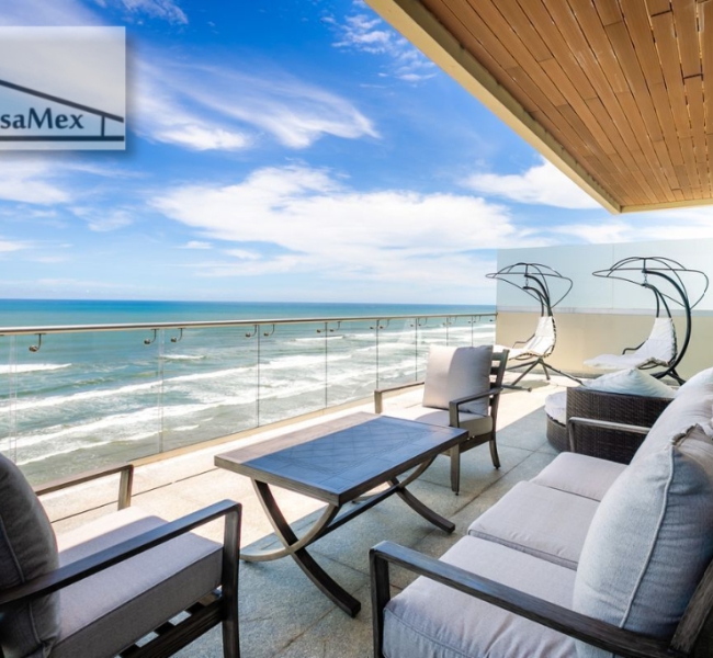 Acapulco Diamond. For Sale sumptuous and spectacular Pent-House, located on Boulevard Barra Vieja, located right on the seashore with a generous front of beautiful golden beaches of 170 meters (concessions) and with a view of fabulous 180 degrees to the open sea, built in 2010 and with a private area of 351 M2, distributed on 2 levels, each and every one of its spaces have been maximized giving it a unique feeling, spacious living room areas attached to a terrace of 30 M2, consists of 6 large bedrooms with closet and the master bedroom has a dressing room and terrace as a rest area with a panoramic view nothing enviable, has 5 and a half bathrooms, modern kitchen equipped with granite bar, open terrace with breakfast area and lounge chairs for total relaxation ideal for watching the beautiful sunsets, fully furnished, air conditioning mini Split type in all areas, 3 covered parking spaces, the monthly maintenance cost is $ 9,000 Pesos, accessibility for seniors, elevators, maid's room with bathroom. As far as amenities are concerned, the development has: Spa, Gym, 2 tennis courts, 1 squash courts, palapa bar, restaurant, swimming pools, private beach, sundecks, lounge chairs and awnings on the beach, game room, kids Club among others. Rigorous access and surveillance 24 Hours. Short distance from the “ Center Mall Commercial La Isla”, very close to the Shows & Conventions Center, The Forum de Imperial world, shopping centers like Wal-Mart and Commercial Mexicana, the Laguna de Tres (3) Palos to practice nautical activities and the beautiful beaches of Acapulco Diamante, only five minutes away from the Acapulco International Airport and the Freeway del Sol. Sales price $ 886,000 USD. Showing by appointment. Credits are accepted with 20% down payment, if you do not have credit maybe we can help you get it. Contact us. ___________________________ E s p a ñ o l ______________________
