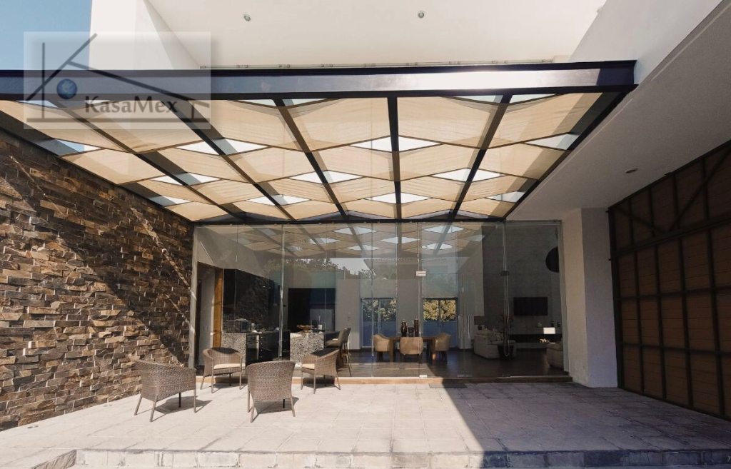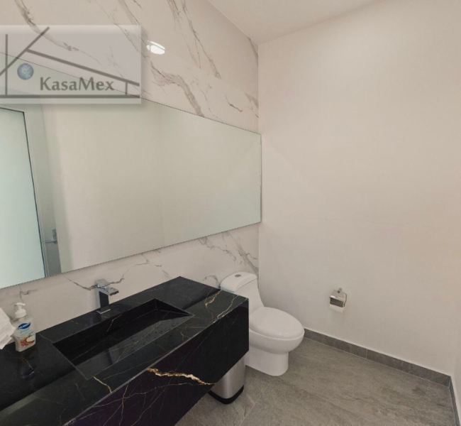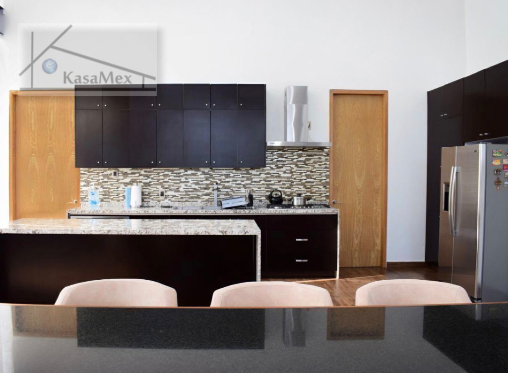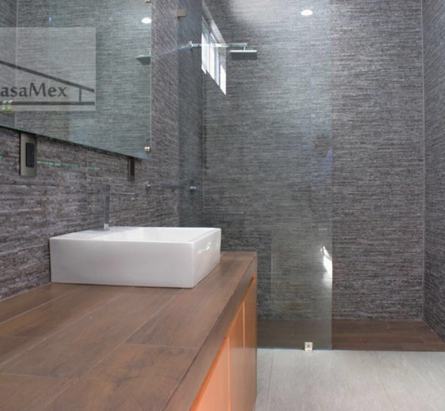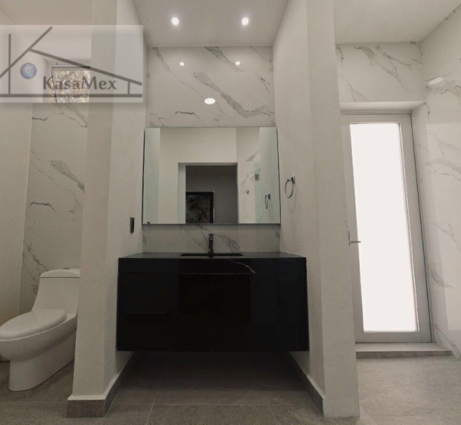 SOLD/ VENDIDA .Guadalajara. (Tlajomulco de Zúñiga). For sale sober and modern Residence like new, Exclusive design of author of one of the most important firms in Mexico, Creato Architects with works of unique style in different parts of the world. It is sold with some furniture, luxury finish. Open concept terrace with triple height (8m) and glass doors. Living room, dining room and very large kitchen, monumental sculpture of renowned artist, 3 bedrooms each with its full bathroom and exit to the pool *with heating* overlooking the garden *500 M2 (5,381 Sq Ft) wooded, independent loft fully equipped * the rooms and the loft have minisplits * built in 2017, has a land area of 1,250 M2 (13,454 Sq. Ft.) (plus 3 half bathrooms in whole house) and a constructed area of 550 M2 (5,920 Sq. Ft -ad- corpus). 2 levels, parking for 10 cars, closed circuit TV, ecological house, Absorption wells, bio digesters for wastewater treatment, Photovoltaic panels, LED lighting, pool heating and bathrooms by solar panels, 2 Cisterns of 10,000 Liters each, automatic sprinkler irrigation, quiet and tree-lined streets, near schools, shopping centers, hospitals, etc. Security and controlled access 24 hours a day. Price $ 985,000 USD Showing by appointment.
