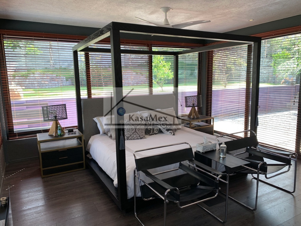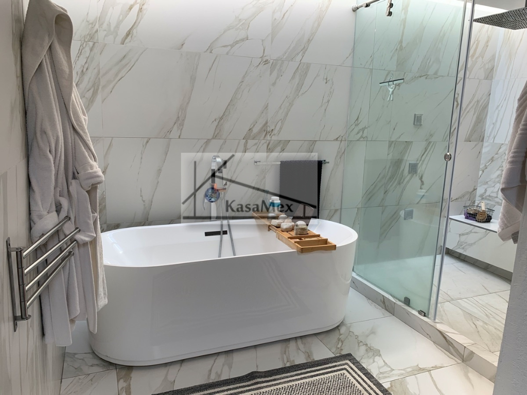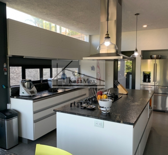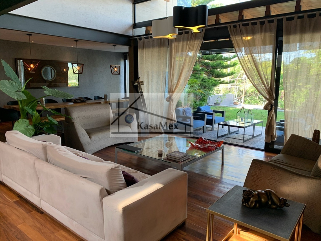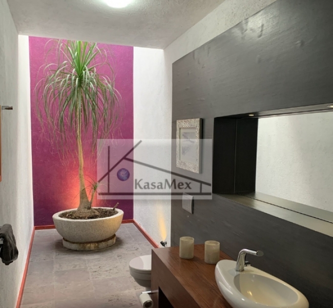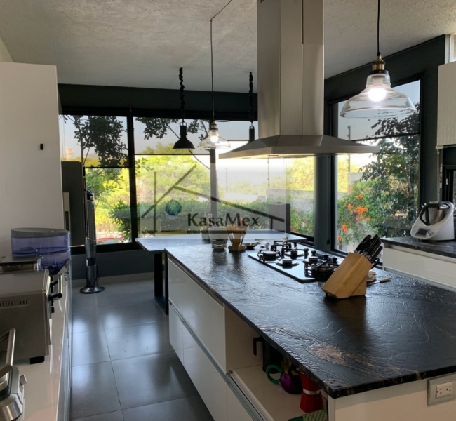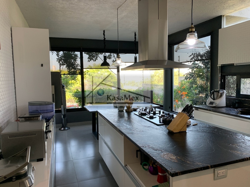 Querétaro, Villas del Meson "Juriquilla" we offer you for sale this beautiful residence of 2 levels sited on 1,000 Sq Meters land and 700 Sq Meters of construction, 4 comfortable and spacious rooms, 5 bathrooms and half guest bathroom, built in 2017. The distribution: On the ground floor double height hall with finishes in red enclosure and wood, half bathroom with double height area, integral kitchen with Italian cabinets, covered with natural black granite, granite dining room, pantry area, service room with bathroom, TV room, reading room, living room, dining room with space for up to 18 people, garden room , front garden. Upstairs: master bedroom with walk-in dressing room, bathroom with Jacuzzi, three bedrooms with dressing room and own bathroom, laundry room, laundry patio, terrace - studio overlooking the back garden of 300 m2, grill area, service corridor. Parking for 4 cars, is coated, natural wood duel, central light dome, solar panels, 5000 liters drinking water tanker, 2500 litre graywater cistern connected to sprinkler system, eight-camera video surveillance system, intelligent lighting system, magnetized door and fingerprint reader access. Located 250 meters from Boulevard Fray Antonio de Monroy e Hijar, 700 meters from Boulevard Fray Junípero Serra and 500 meters from Boulevard Villas del Meson, roads that connect with the main road arteries of the city such as Avenue 5 of February, Libramiento Sur-Poniente and Boulevard Bernardo Quintana. Five minutes from the commercial area of Juriquilla, it houses self-service stores, grocery stores, convenience stores, boutiques, gyms, shopping centers, corporate offices and more. Price $19, 700,000 Pesos. Showing only by appointment.
