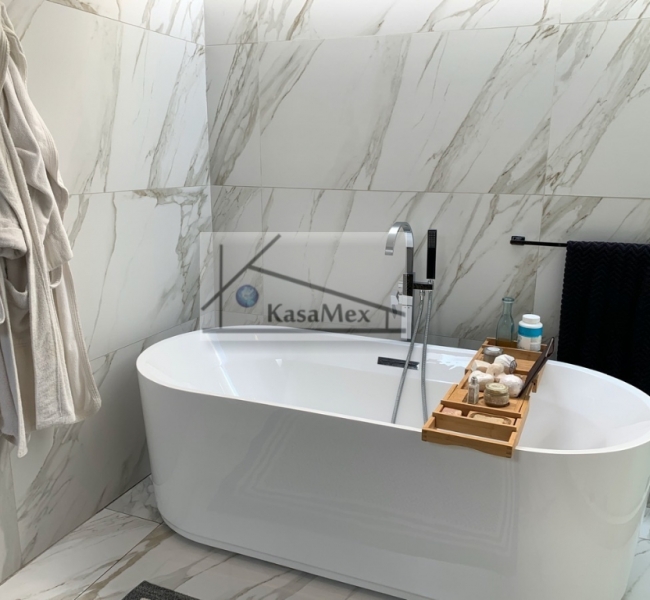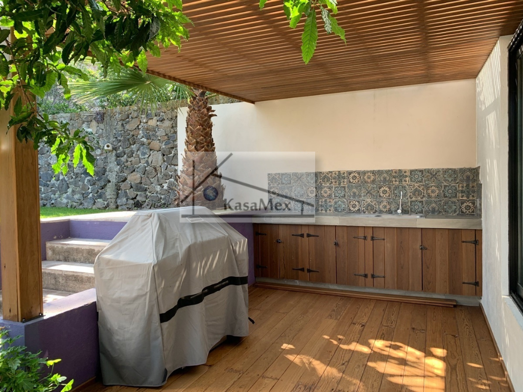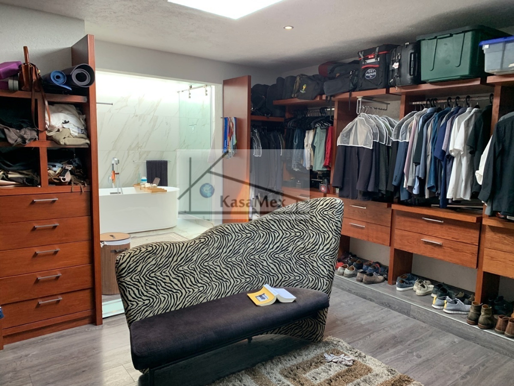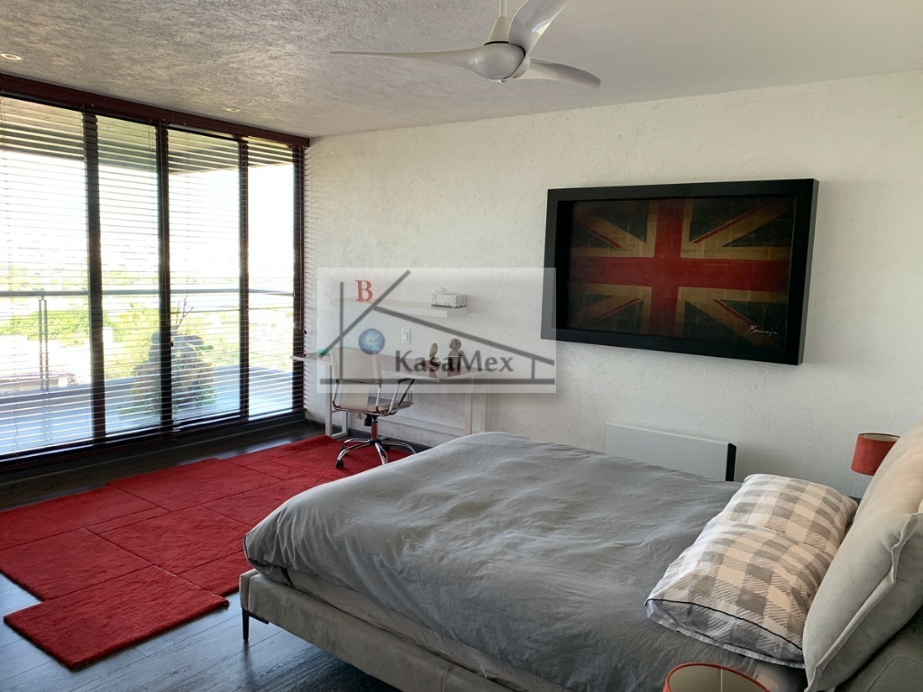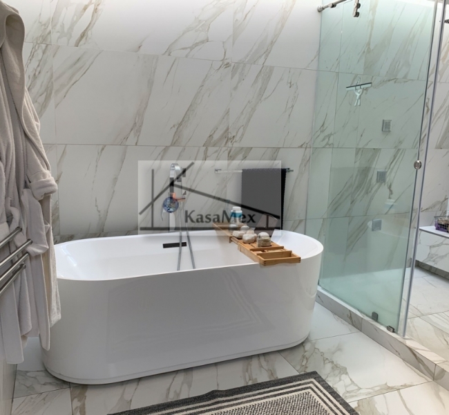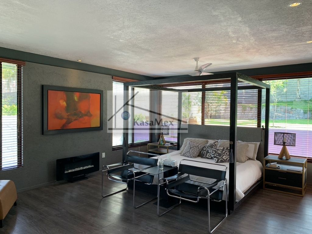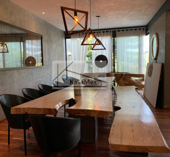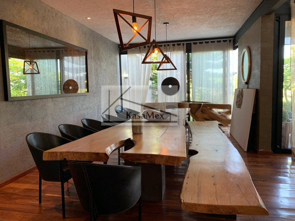 Querétaro, Villas del Meson "Juriquilla" we offer you for sale this beautiful residence of 2 levels sited on 1,000 Sq Meters land and 700 Sq Meters of construction, 4 comfortable and spacious rooms, 5 bathrooms and half guest bathroom, built in 2017. The distribution: On the ground floor double height hall with finishes in red enclosure and wood, half bathroom with double height area, integral kitchen with Italian cabinets, covered with natural black granite, granite dining room, pantry area, service room with bathroom, TV room, reading room, living room, dining room with space for up to 18 people, garden room , front garden. Upstairs: master bedroom with walk-in dressing room, bathroom with Jacuzzi, three bedrooms with dressing room and own bathroom, laundry room, laundry patio, terrace - studio overlooking the back garden of 300 m2, grill area, service corridor. Parking for 4 cars, is coated, natural wood duel, central light dome, solar panels, 5000 liters drinking water tanker, 2500 litre graywater cistern connected to sprinkler system, eight-camera video surveillance system, intelligent lighting system, magnetized door and fingerprint reader access. Located 250 meters from Boulevard Fray Antonio de Monroy e Hijar, 700 meters from Boulevard Fray Junípero Serra and 500 meters from Boulevard Villas del Meson, roads that connect with the main road arteries of the city such as Avenue 5 of February, Libramiento Sur-Poniente and Boulevard Bernardo Quintana. Five minutes from the commercial area of Juriquilla, it houses self-service stores, grocery stores, convenience stores, boutiques, gyms, shopping centers, corporate offices and more. Price $19, 700,000 Pesos. Showing only by appointment.