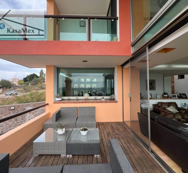 (Informacion español mas abajo) Querétaro (Corregidora) For Sale. Panoramic family house within the Vista Real subdivision. The property has a land area of 1,031 Sq. Meters and a construction area of 516 Sq. Meters, built 15 years ago. Deployed in 3 levels. At street level: a maid's room with full bathroom, covered laundry area, exit to the garden with service patio, patio with barbecue area, large garden, covered parking for three cars, 7,500 liter cistern. On the first level: Main entrance and foyer, guest half bathroom, white closet / cellar, decorative patio, living room with bar area, terrace, dining room, large kitchen, terrace with access to the garden area. On the second level: Three bedrooms with full bathroom and closets, one of them has a loft area, Option to fourth bedroom with full bathroom or study. On the third level: Master bedroom with full bathroom with double shower and double sink, walk-in closet and panoramic terrace. Amenities: Located within a gated community with controlled access and 24 hour security, green areas and lakes in different parts of the community. The subdivision has a Club which has sports courts, restaurant, events room, gardens, Equestrian Center, classes and sports and recreational activities. Location: 5 km from schools, banks, services, shopping area, housing and road access, gas stations. 11 km from Centro Sur. All utilities in the area and underground. Showing only by appointment.