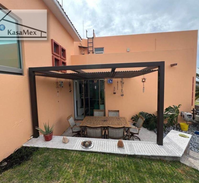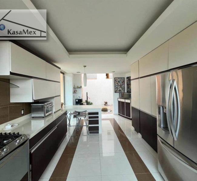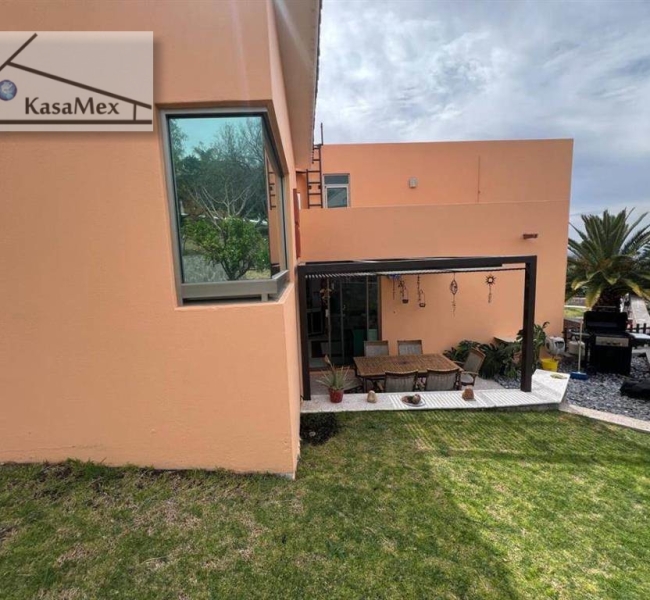 516 M2, construida hace 15 años. Desplantada en 3 niveles. A nivel de calle: se localiza un cuarto de servicio con baño completo, Área de lavado techado, Salida hacia el jardín con patio de servicio, Patio con área de asador, Amplio Jardín, Estacionamiento techado para tres autos, Cisterna de 7,500 litros. En el primer nivel: Acceso principal y Recibidor, Medio baño de visitas, Closet de blancos/bodega, Patio decorativo, Sala con área de bar, Terraza, Comedor, Amplia Cocina integral, Terraza con acceso al área de jardín. En el segundo nivel: Tres recámaras con baño completo y closets, una de ellas cuenta con un área de tapanco, Opción a cuarta recámara con baño completo o estudio. En el tercer nivel: Recámara principal con baño completo con doble regadera y doble lavabo, vestidor y terraza panorámica. Amenidades: Ubicado dentro de fraccionamiento con acceso controlado y vigilancia las 24 horas, Áreas verdes y zona de lagos en distintos puntos del fraccionamiento. El Fraccionamiento cuenta con Club el cual cuenta con canchas deportivas, restaurante, salón de eventos, jardines, Centro Ecuestre, clases y actividades de deportivas y recreativas. Ubicación: A 5 km a la redonda de escuelas, bancos, servicios, zona comercial, habitacional y accesos viales, gasolineras. A 11km de Centro Sur.